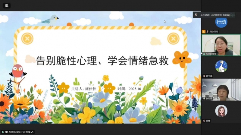 施主任围绕脆性心理的类型、成因、情绪急救方法、应对策略以及何时需要专业帮助等多个方面展开系统介绍。结合丰富案例,她对如何识别脆性心理、掌握情绪急救技巧进行了深入浅出的剖析,并分享了应对心理健康问题的实用经验。